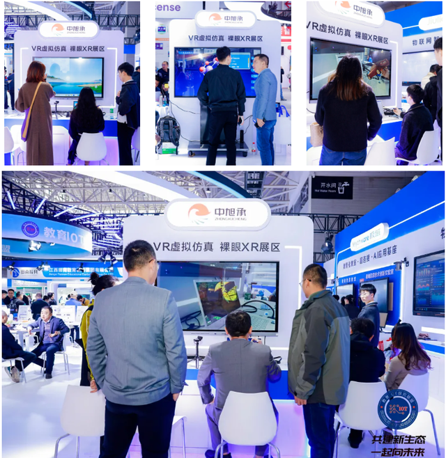展会现场,中旭承展区吸引了不少教育从业者与行业专家驻足体验、咨询交流。参观者通过现场体验XR交互学习一体机,直观感受了STEM教学中抽象知识的具象化呈现、职业教育中的沉浸式虚拟实训,以及高等教育跨学科协作的创新模式。实用的交互体验让大家切实了解到裸眼XR技术在提升教学效率方面的价值,部分参观者现场表达了进一步沟通的意向,整体交流氛围良好。